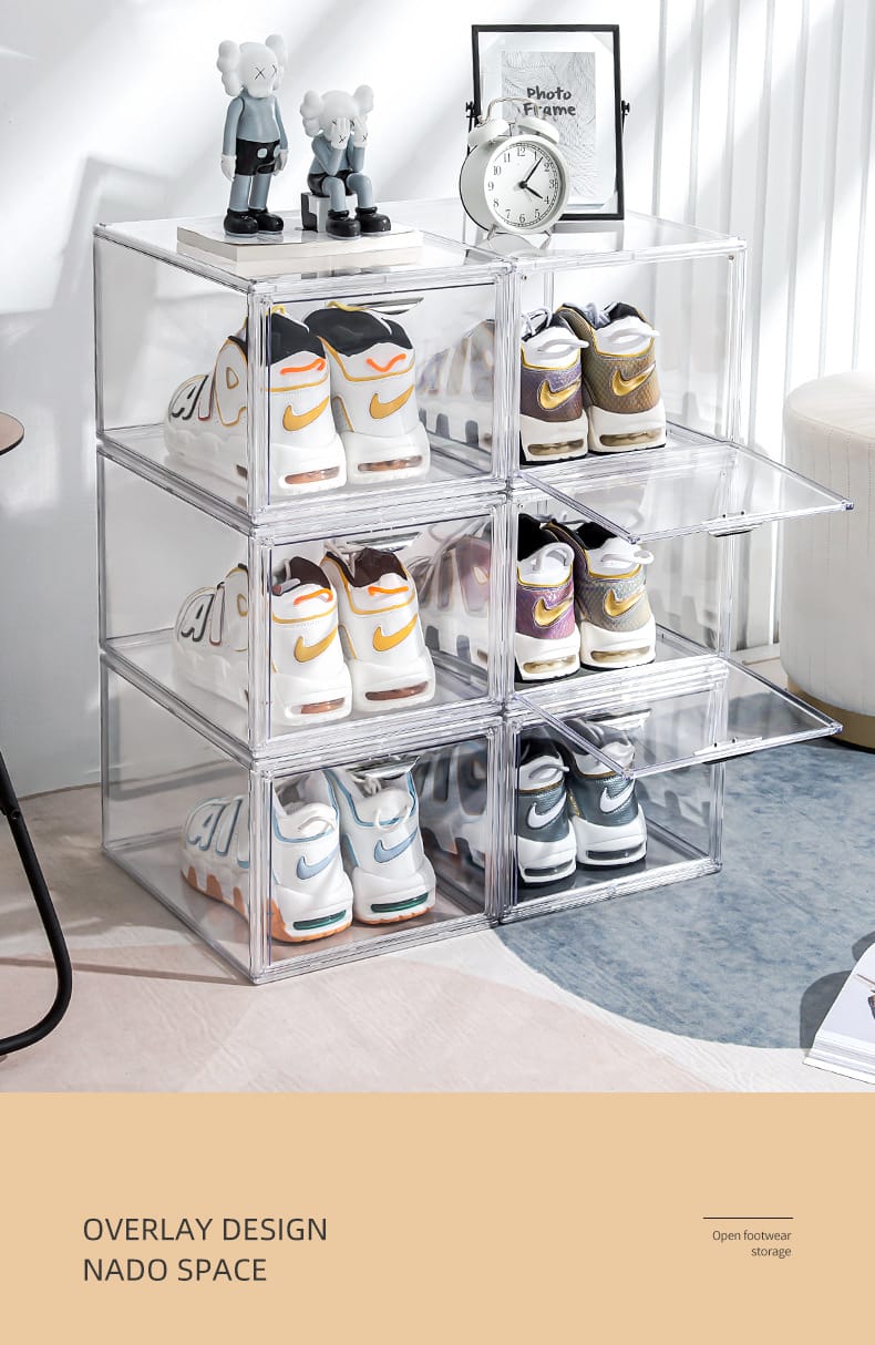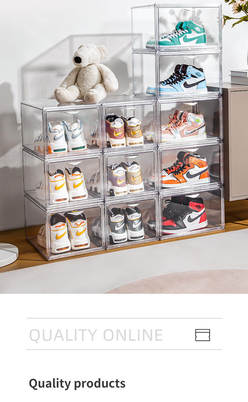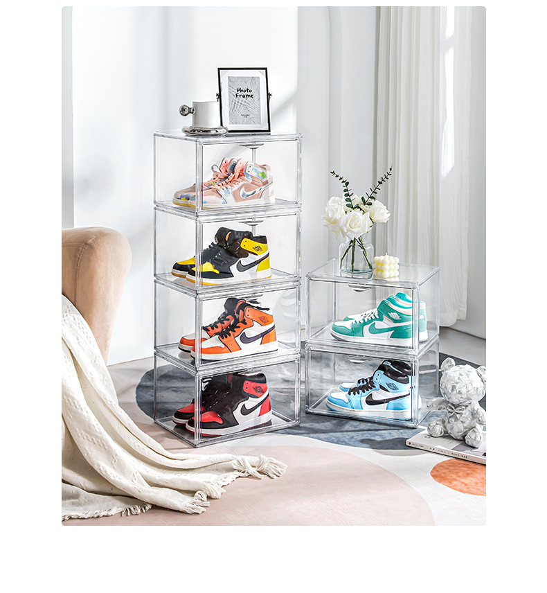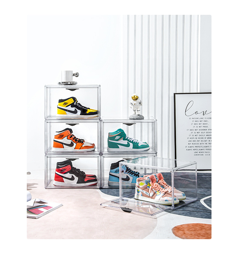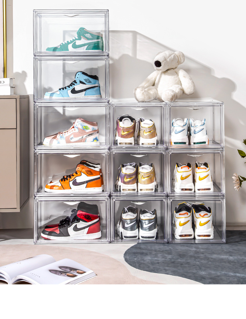 New multi-open shoe box transparent plastic magnetic sneaker storage box dust bag PET display box factory direct sales
