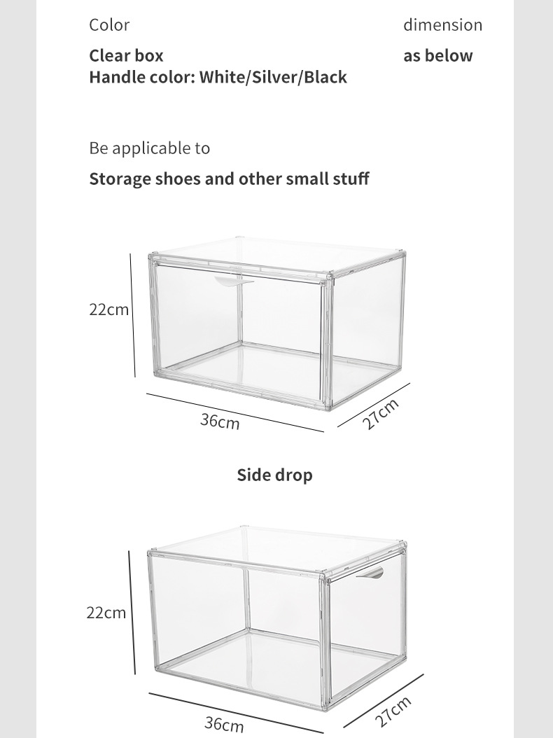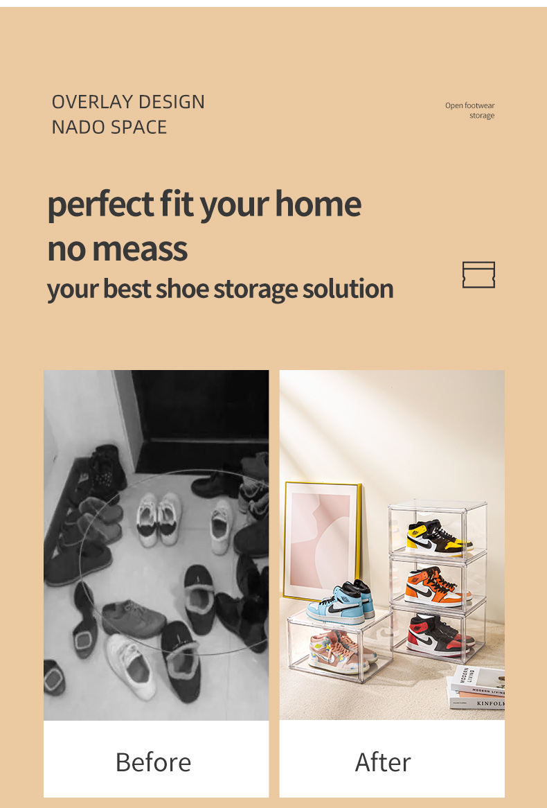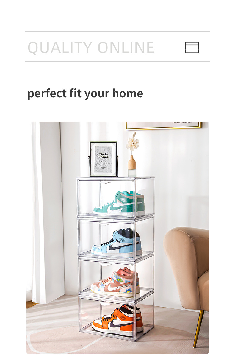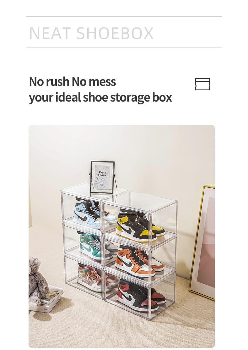 New multi-open shoe box transparent plastic magnetic sneaker storage box dust bag PET display box factory direct sales