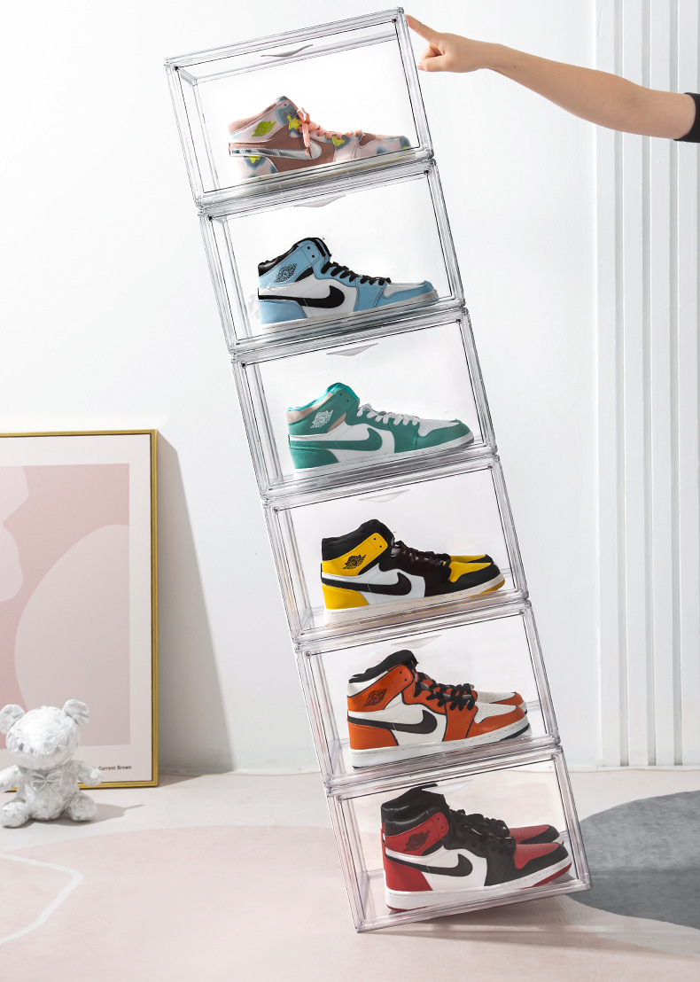 Factory direct sales enlarged plastic basketball sneakers storage shoe box transparent magnetic high-grade thickened drawer PP storage
