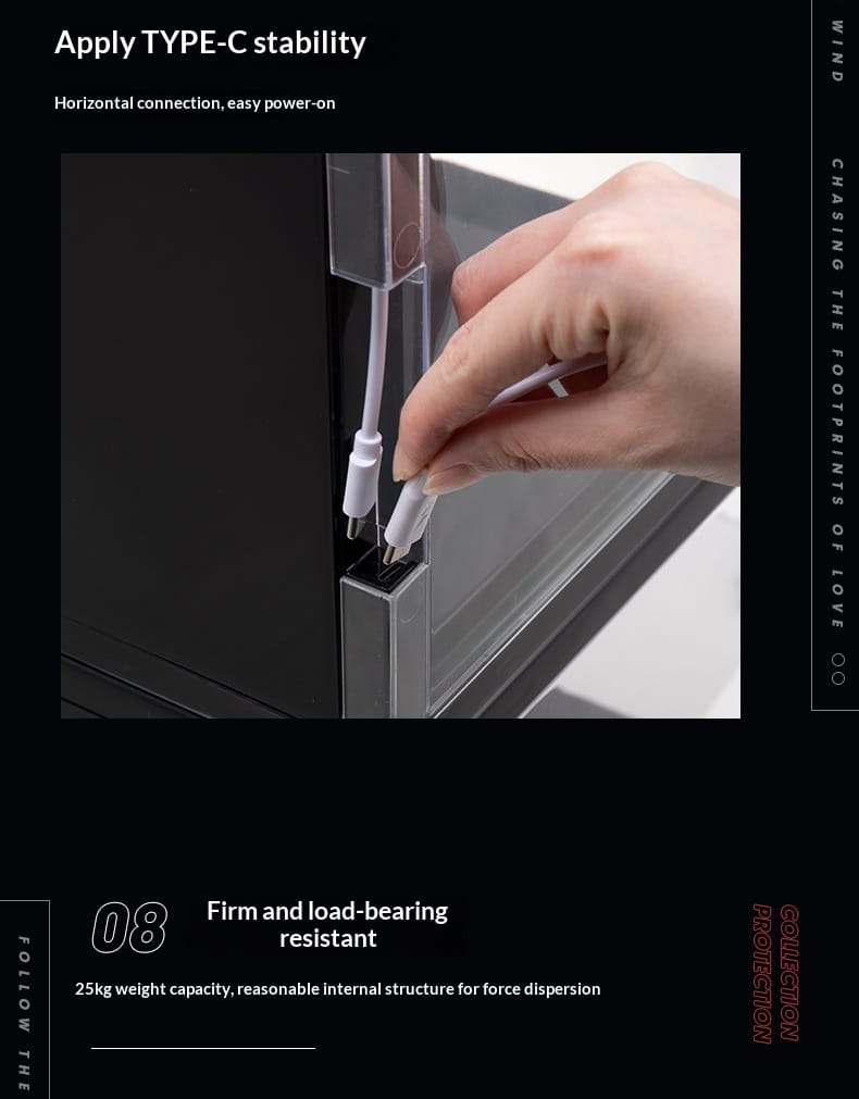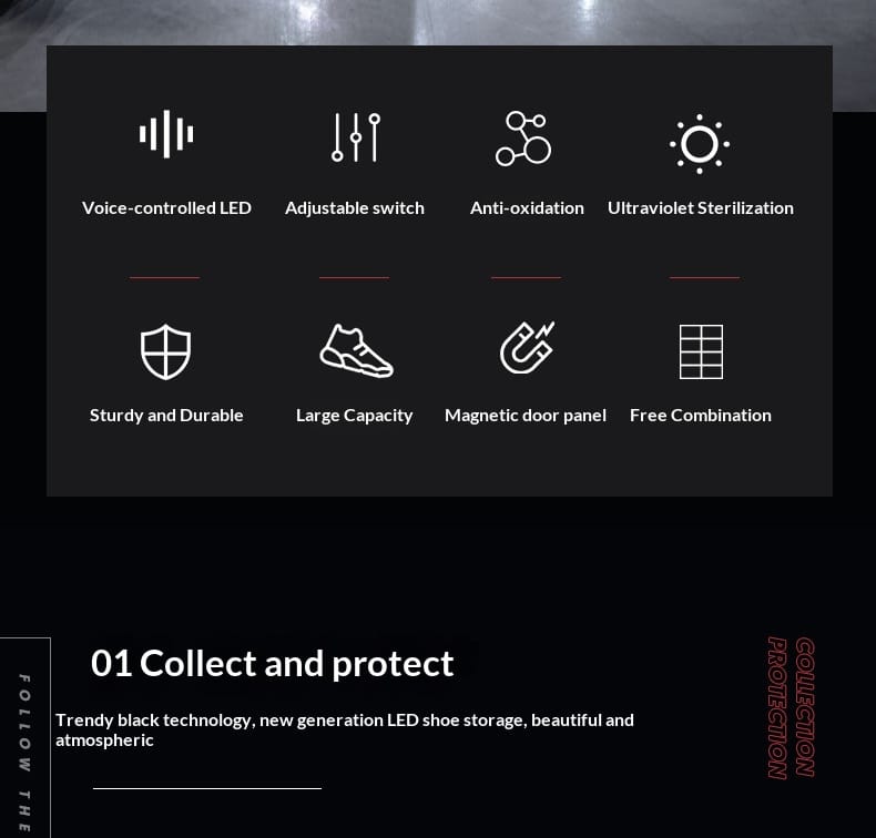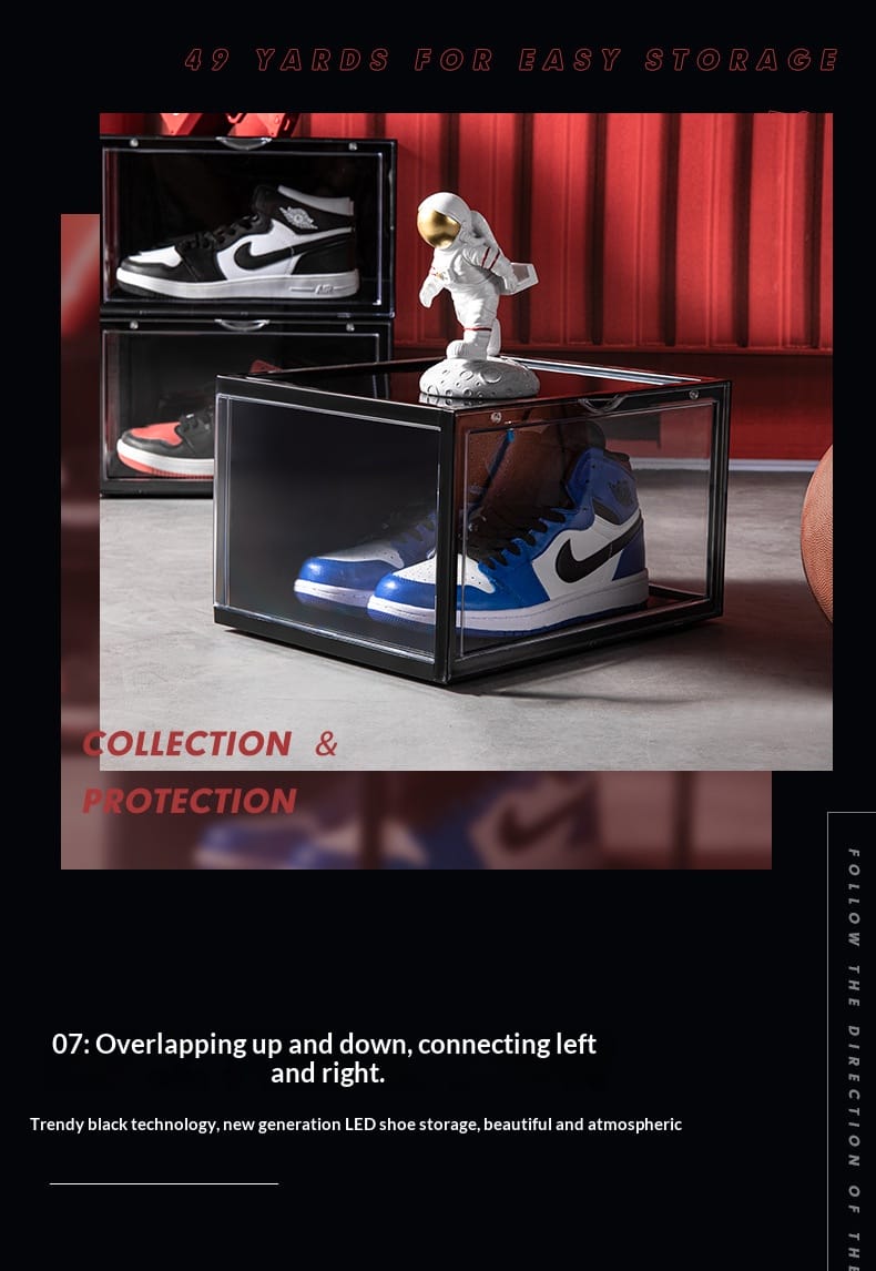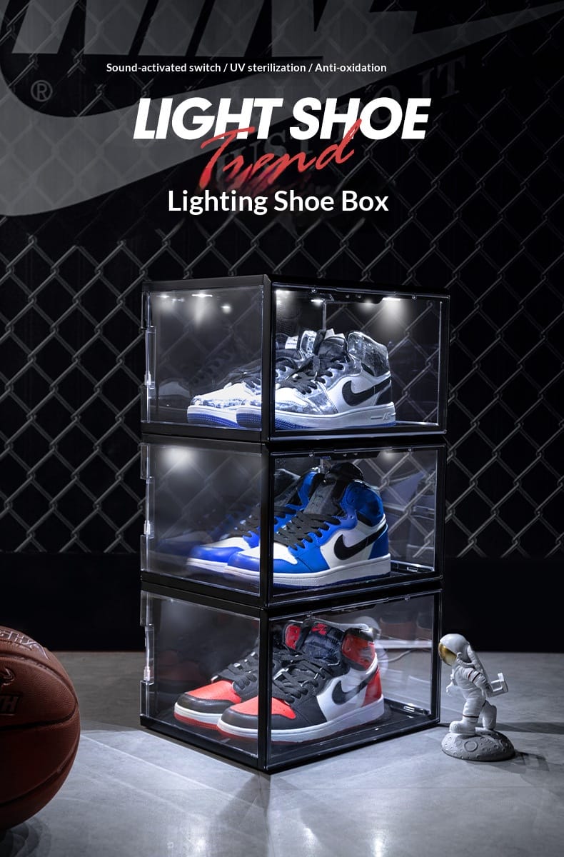Cross-border high-end LED luminous shoe box UV sterilization dustproof shoe cabinet side opening voice control plastic magnetic absorption box