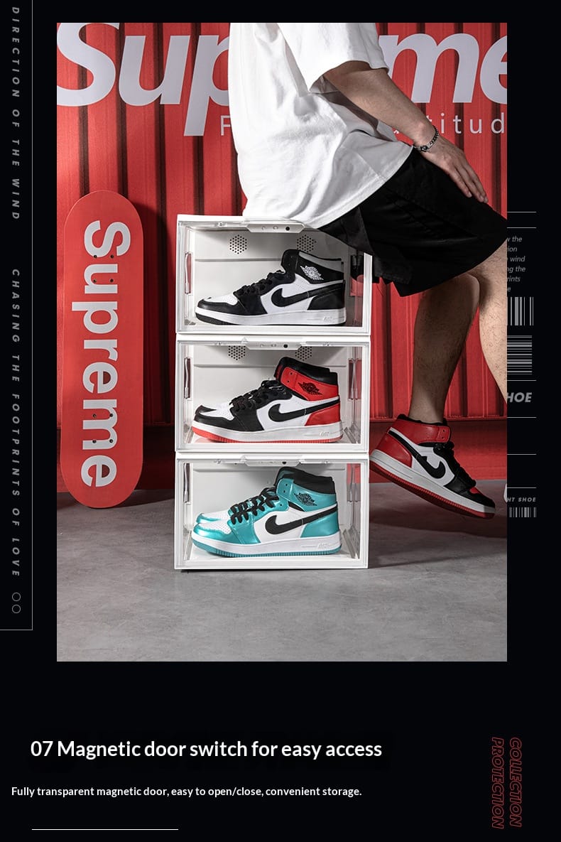 New multi-open shoe box transparent plastic magnetic sneaker storage box dust bag PET display box factory direct sales