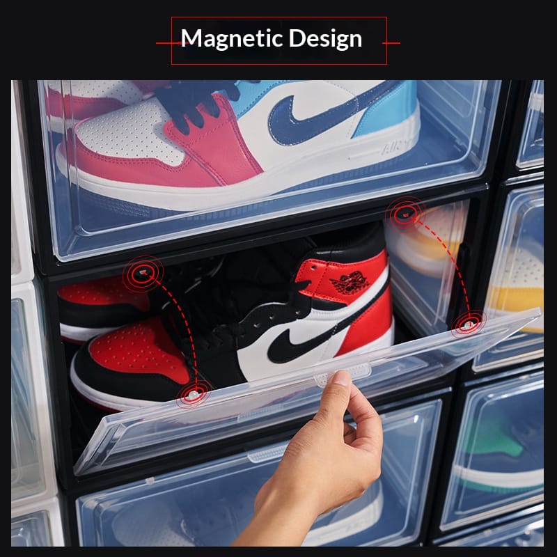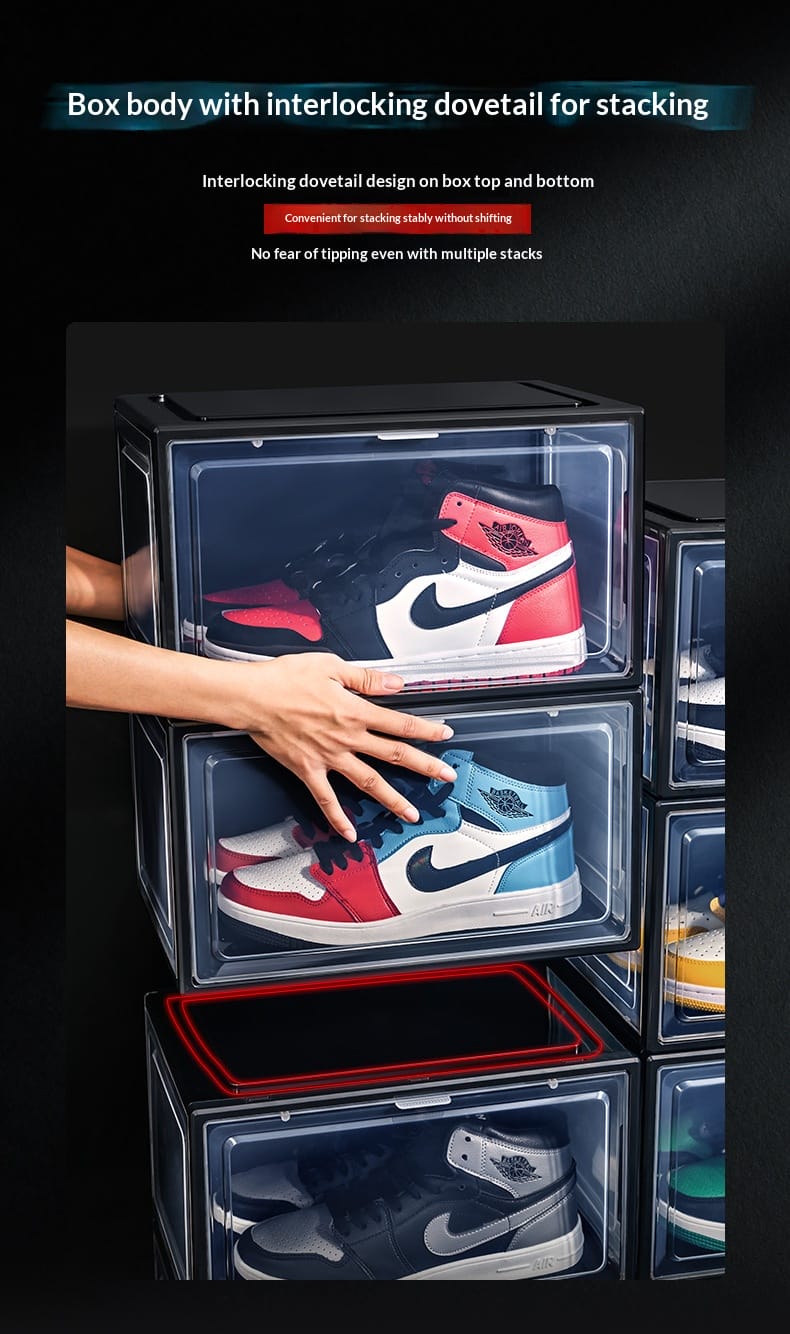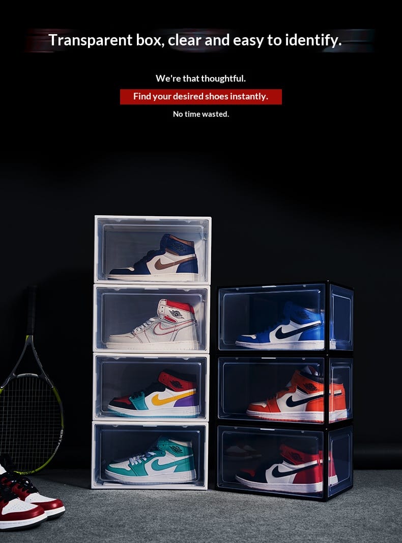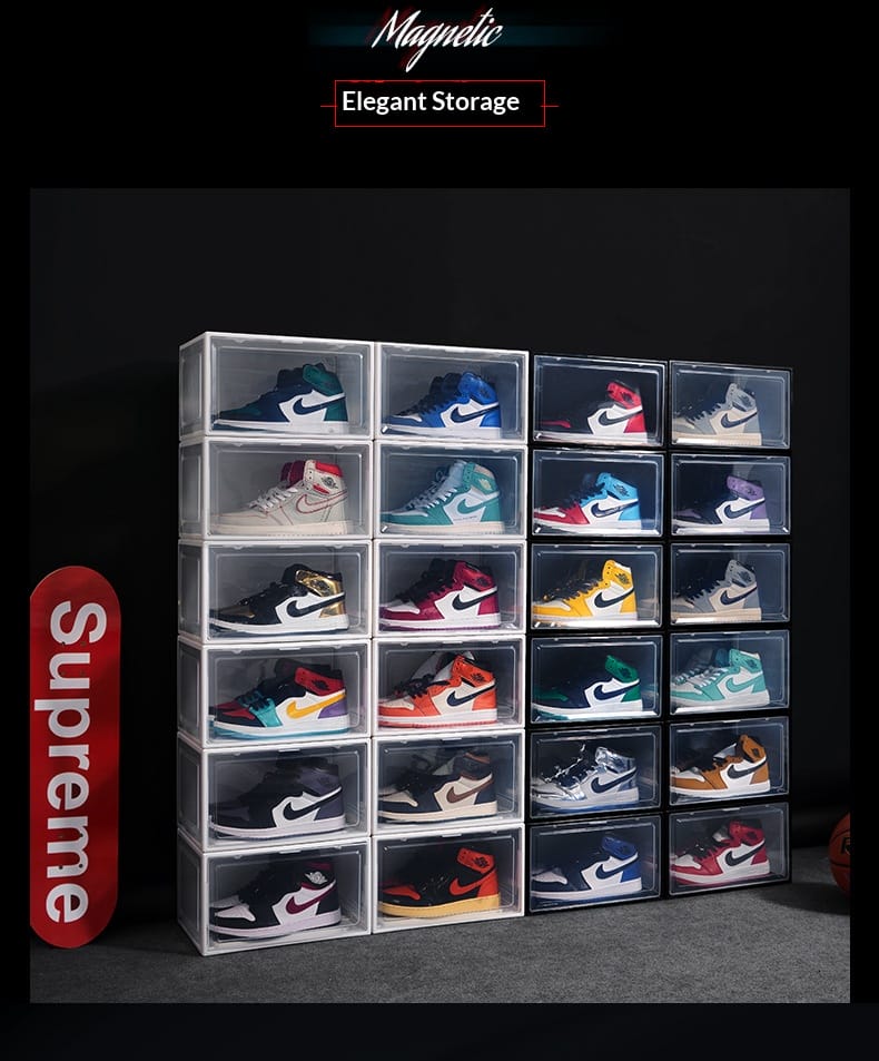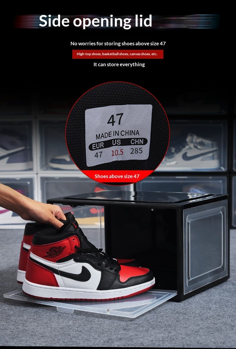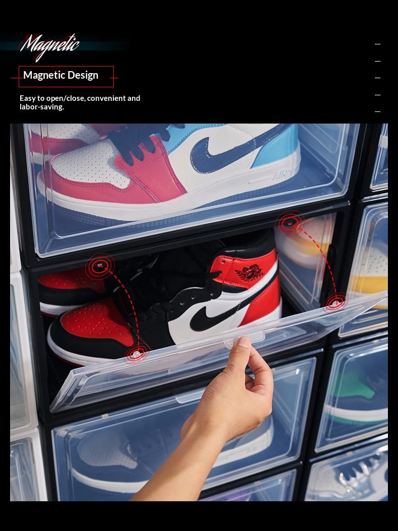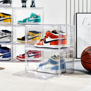 Factory direct sales enlarged plastic basketball sneakers storage shoe box transparent magnetic high-grade thickened drawer PP storage