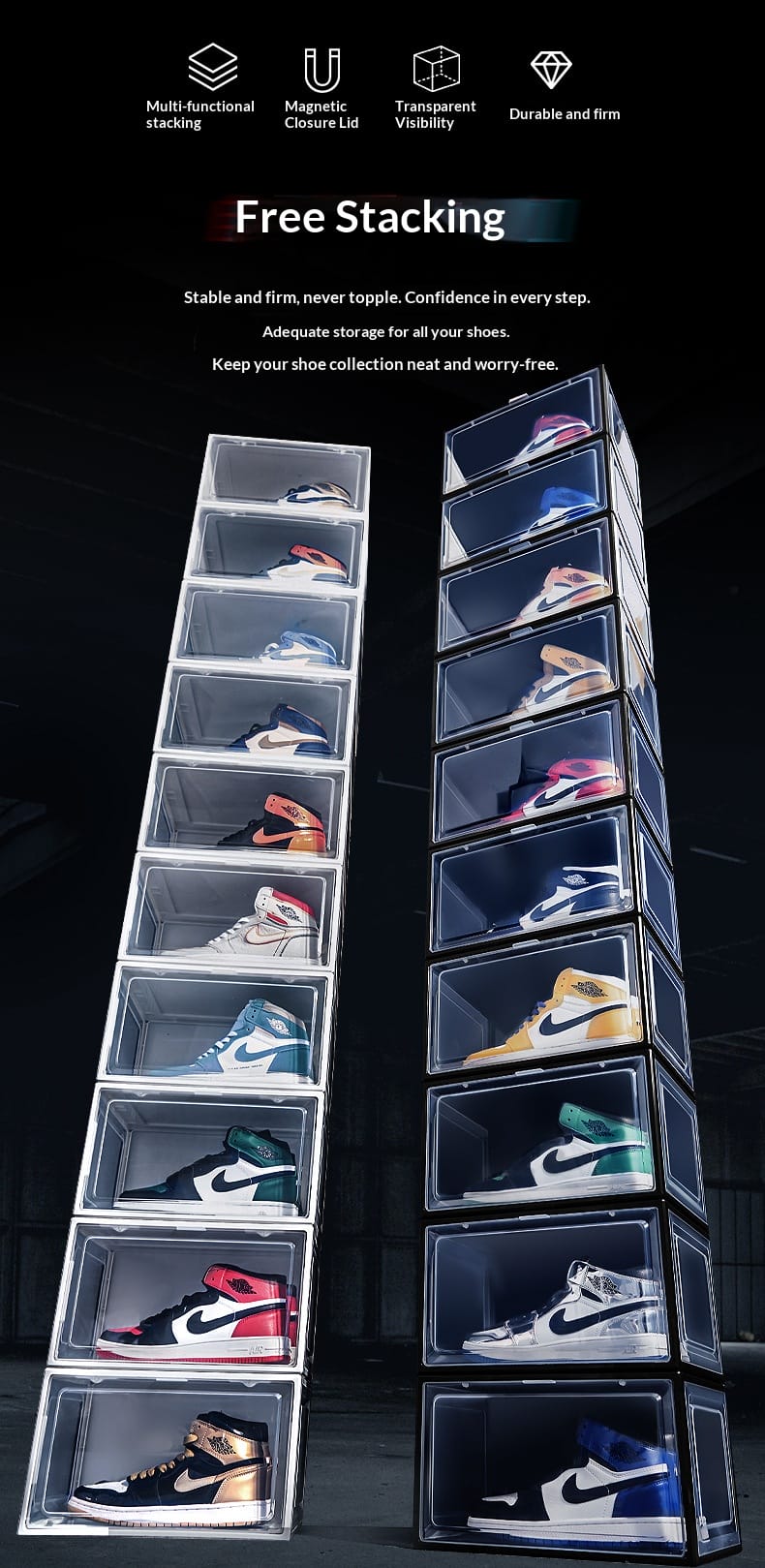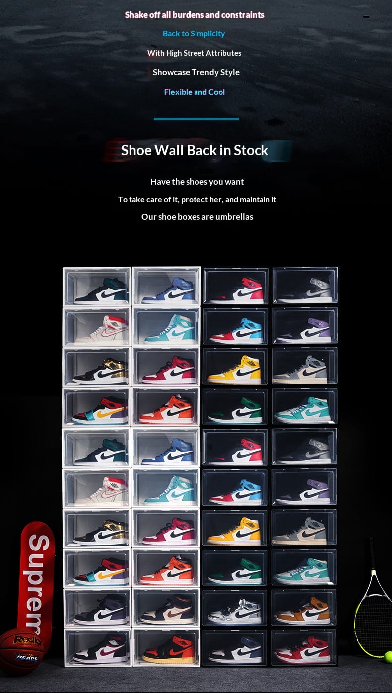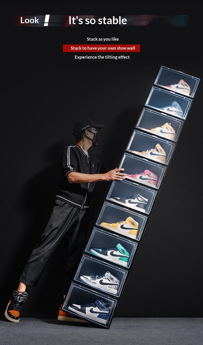 SWOOSH shoe box storage box full transparent acrylic aj shoes side open sneakers anti-oxidation and dust-proof plastic shoe wall