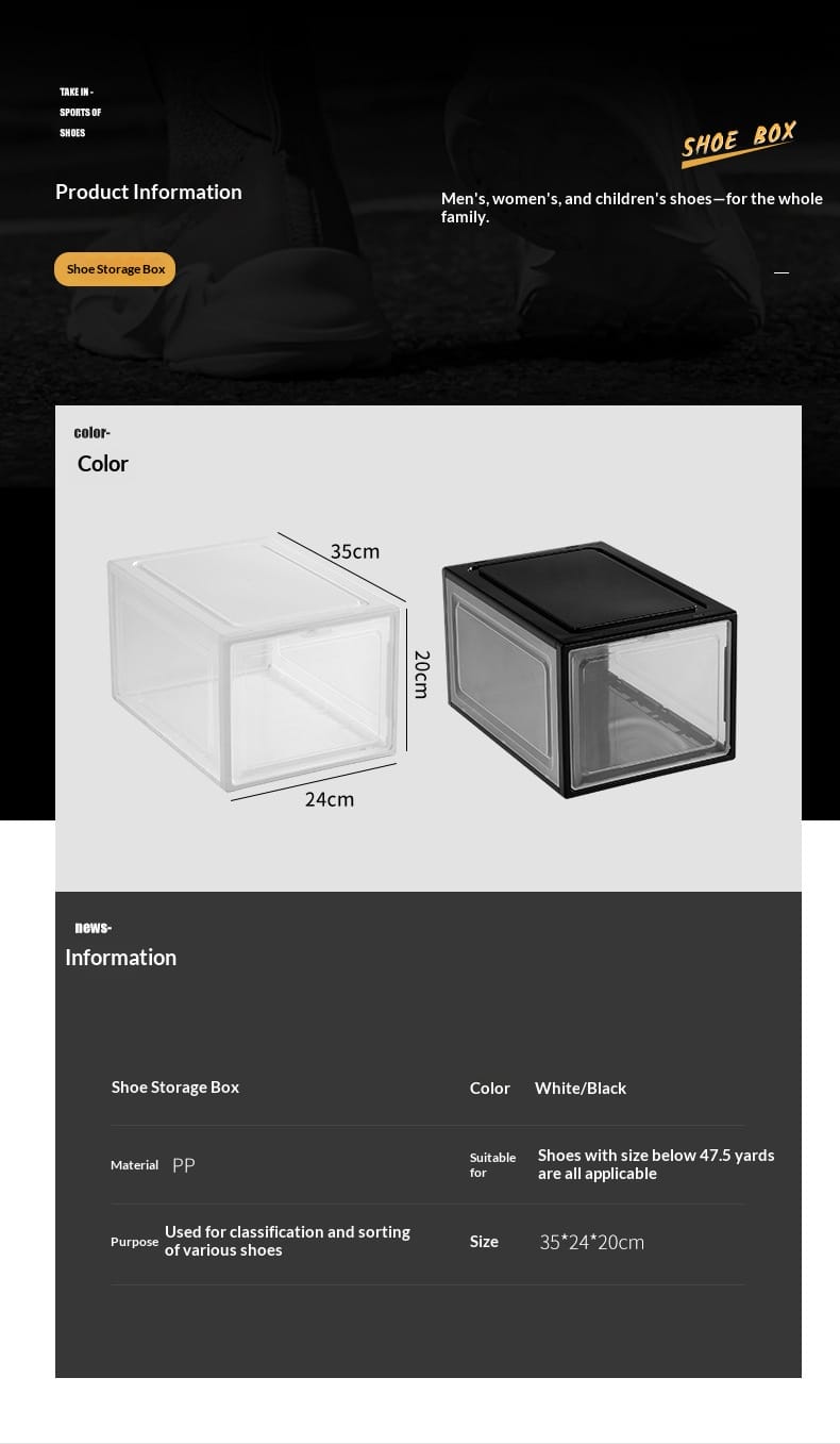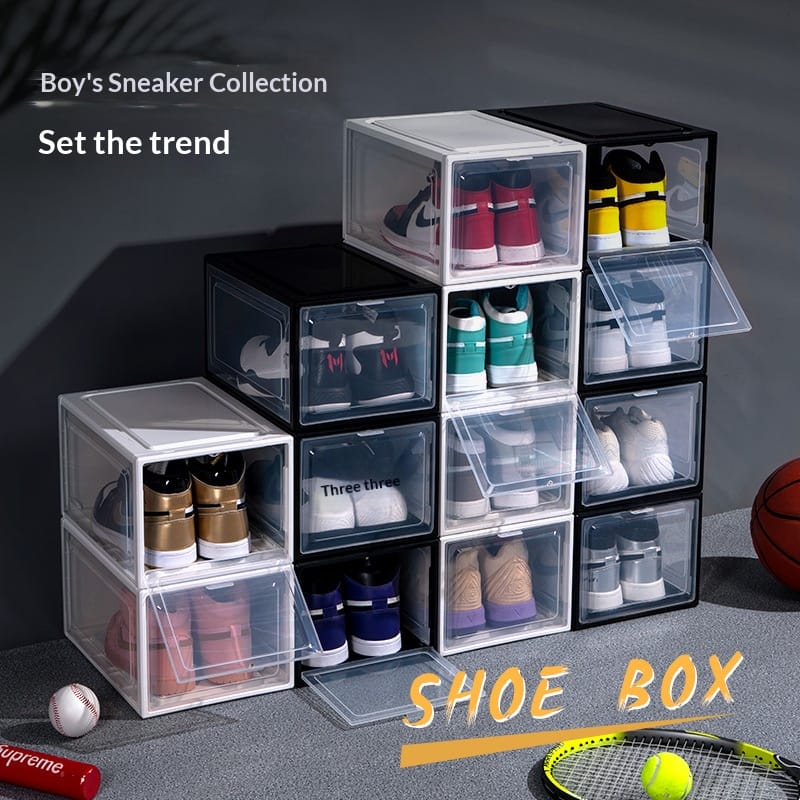 Transparent shoebox side-open, anti-oxidation, dust-proof, moisture-proof plastic storage shoebox, basketball shoe display wall, acrylic shoebox