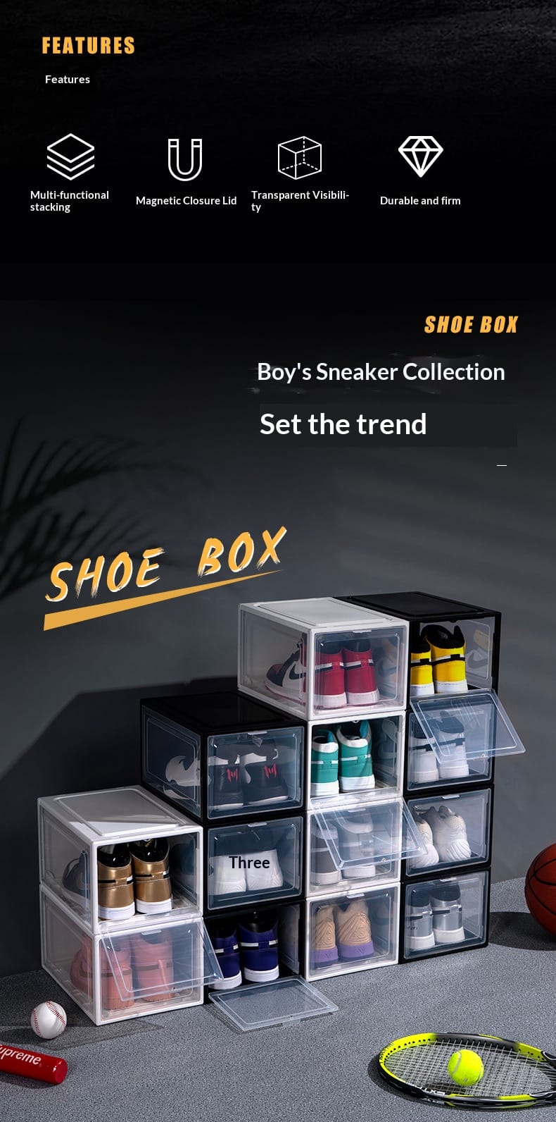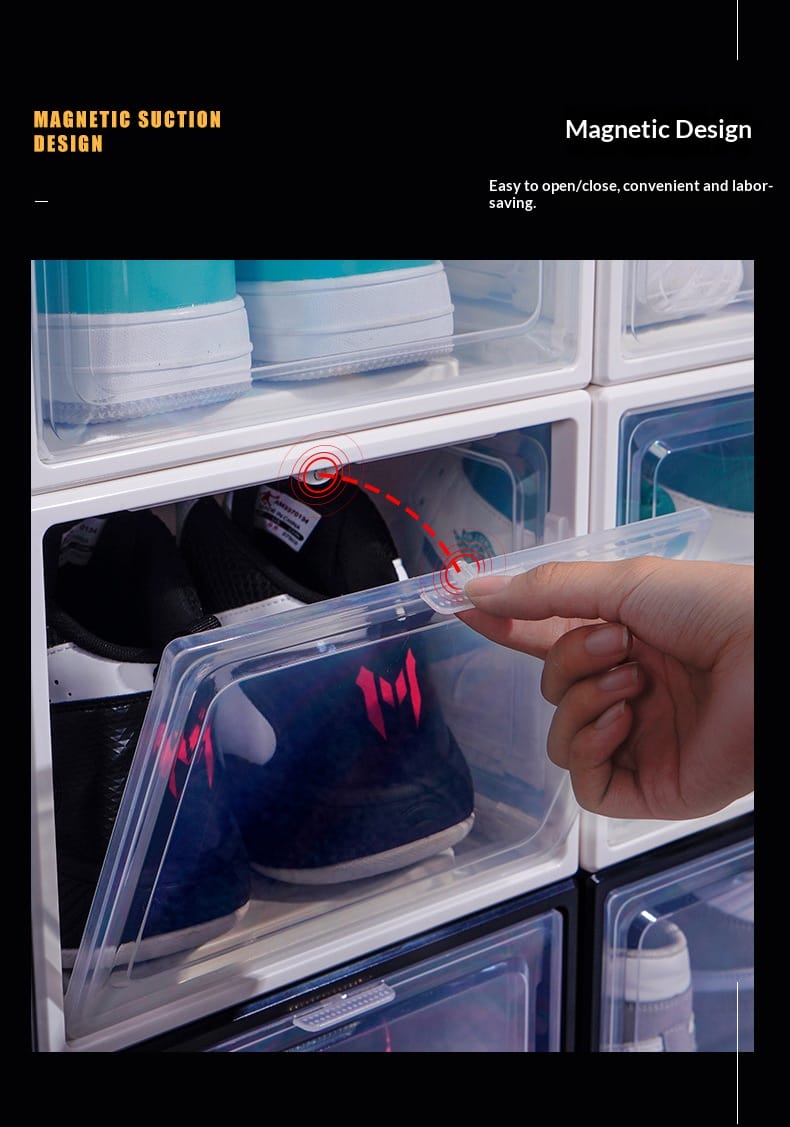 Factory direct sales enlarged plastic basketball sneakers storage shoe box transparent magnetic high-grade thickened drawer PP storage