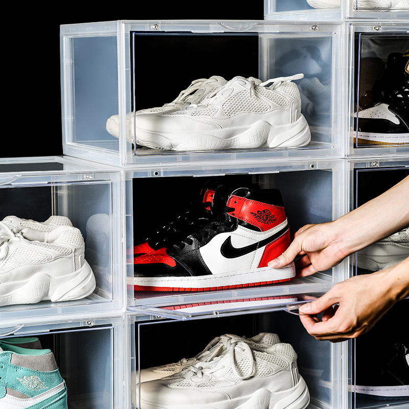 Transparent shoebox side-open, anti-oxidation, dust-proof, moisture-proof plastic storage shoebox, basketball shoe display wall, acrylic shoebox