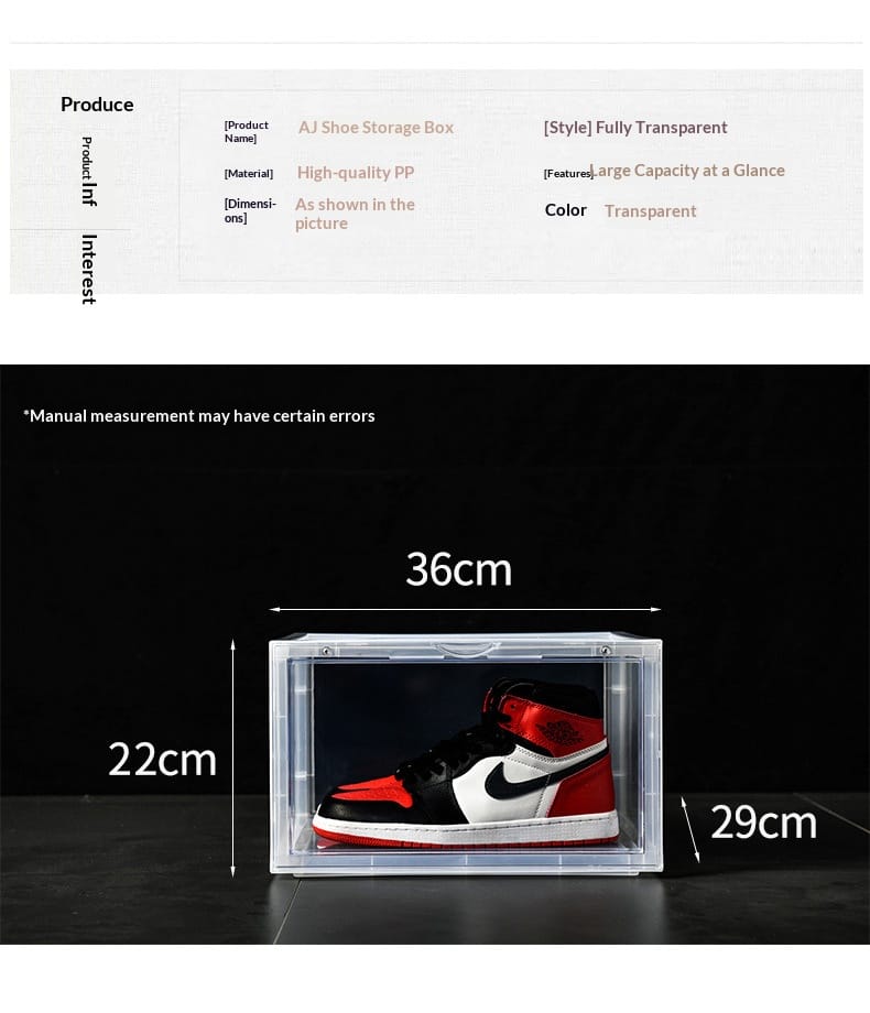 Thickened aj Sneakers Storage Box Dustproof PP Flap Plastic Transparent Shoe Box Acrylic Display Box Factory Wholesale