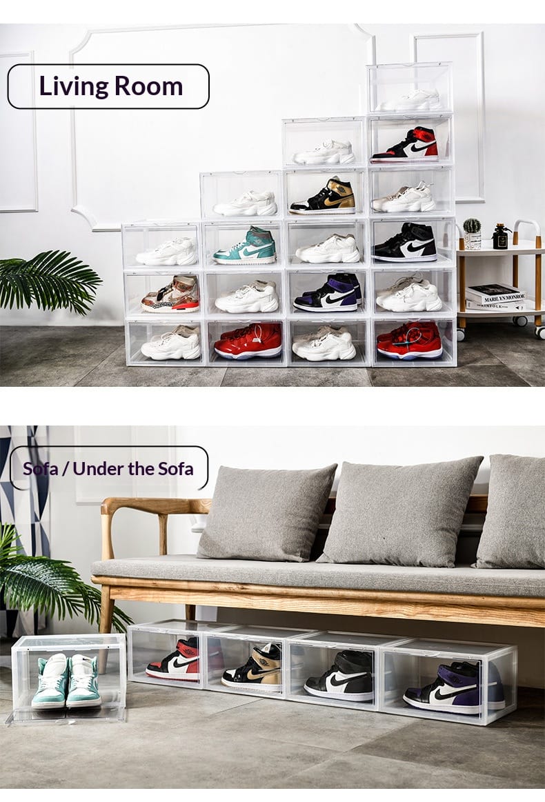 New multi-open shoe box transparent plastic magnetic sneaker storage box dust bag PET display box factory direct sales