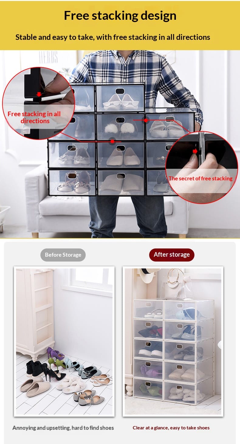 Lightning Pick Up Thickened Transparent Shoe Box Display Rack Shoe Storage Artifact Shoe Box Shoe Box Flap Drawer Box