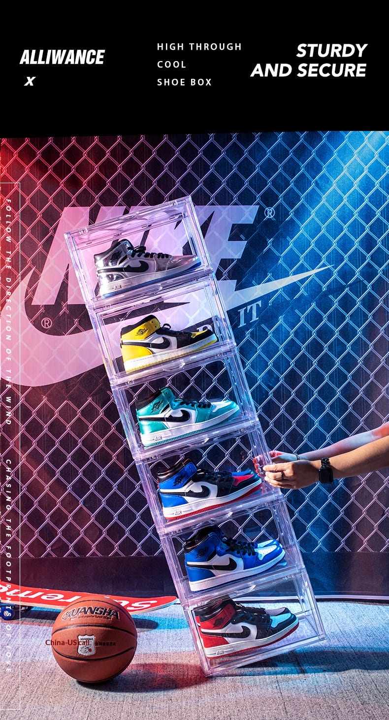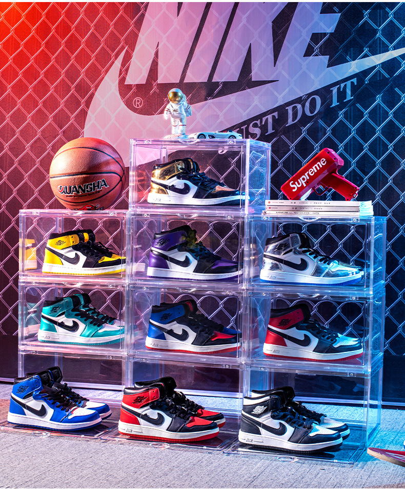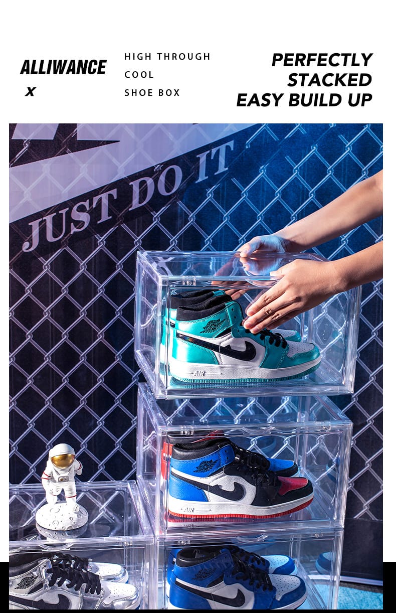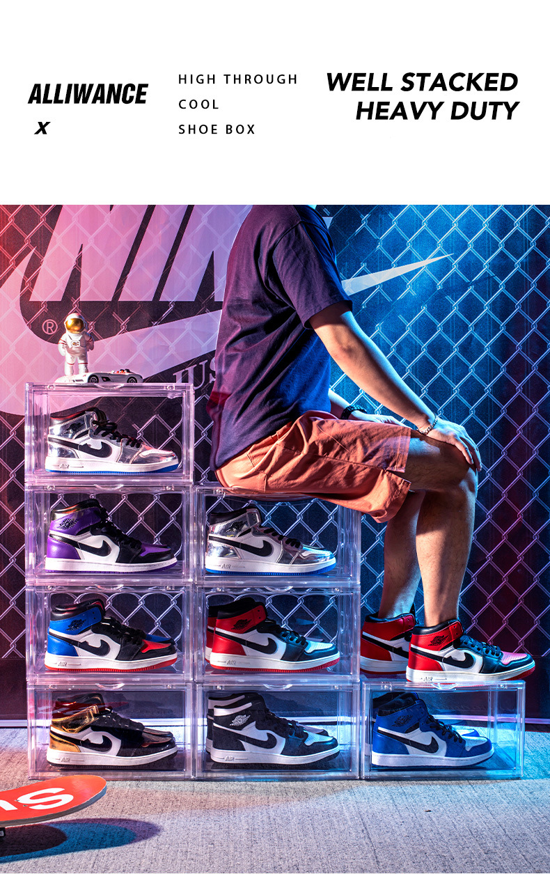SWOOSH shoe box storage box full transparent acrylic aj shoes side open sneakers anti-oxidation and dust-proof plastic shoe wall