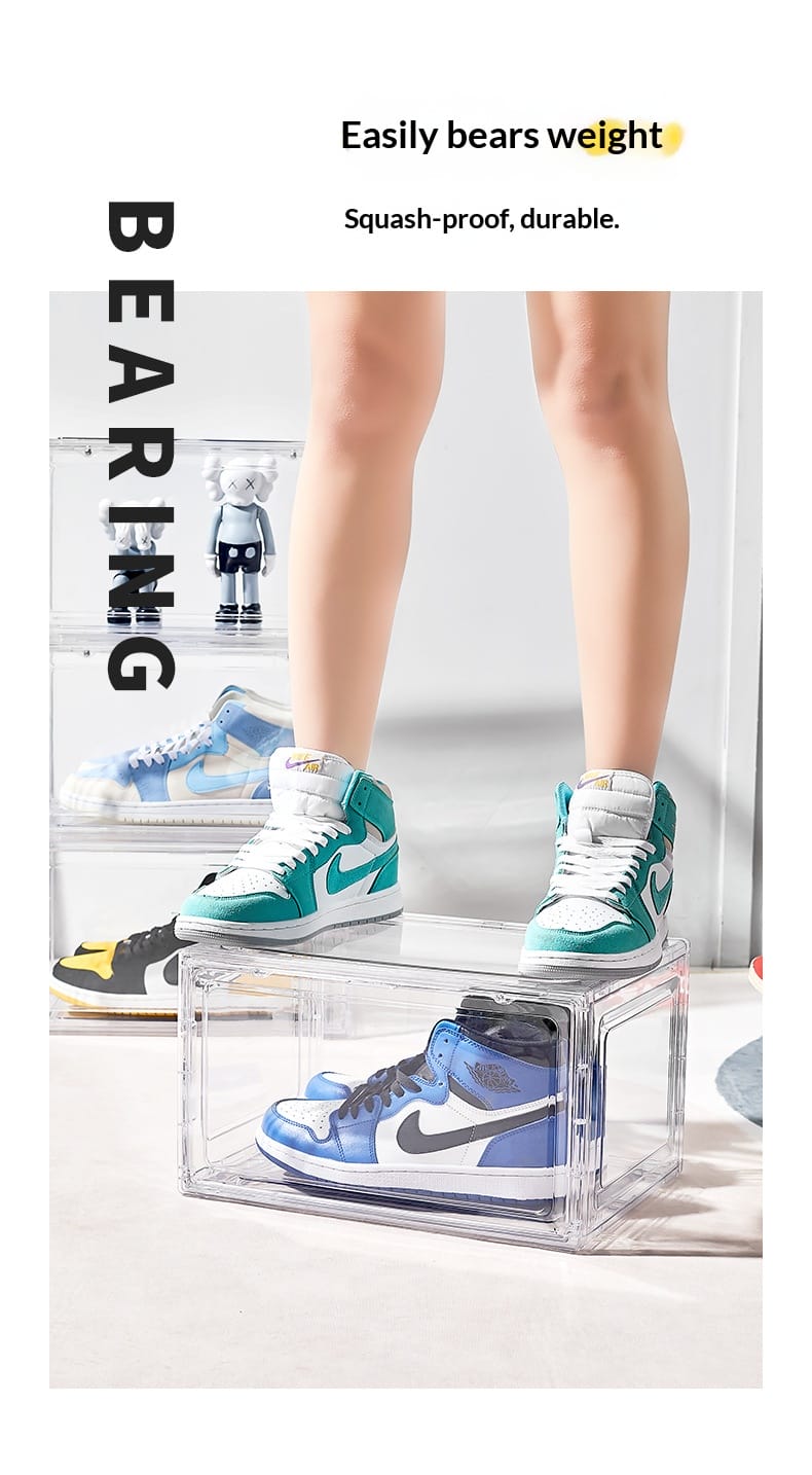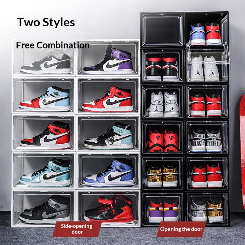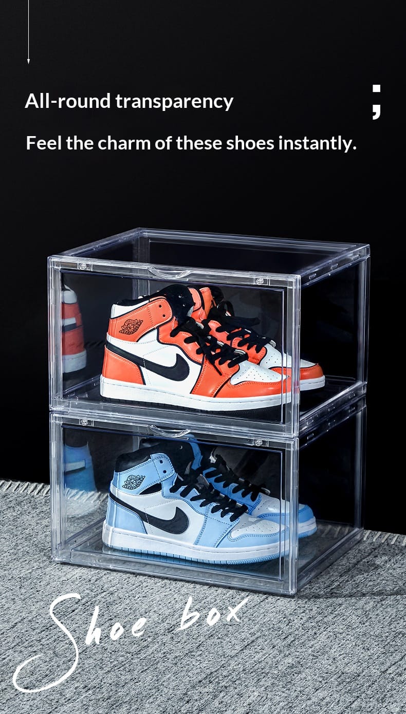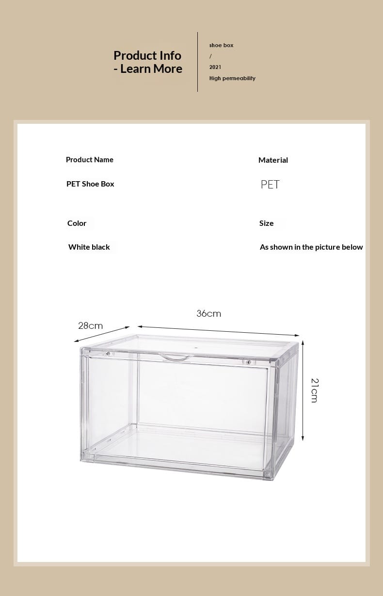 New multi-open shoe box transparent plastic magnetic sneaker storage box dust bag PET display box factory direct sales