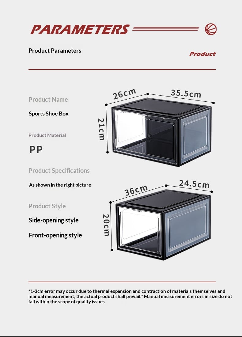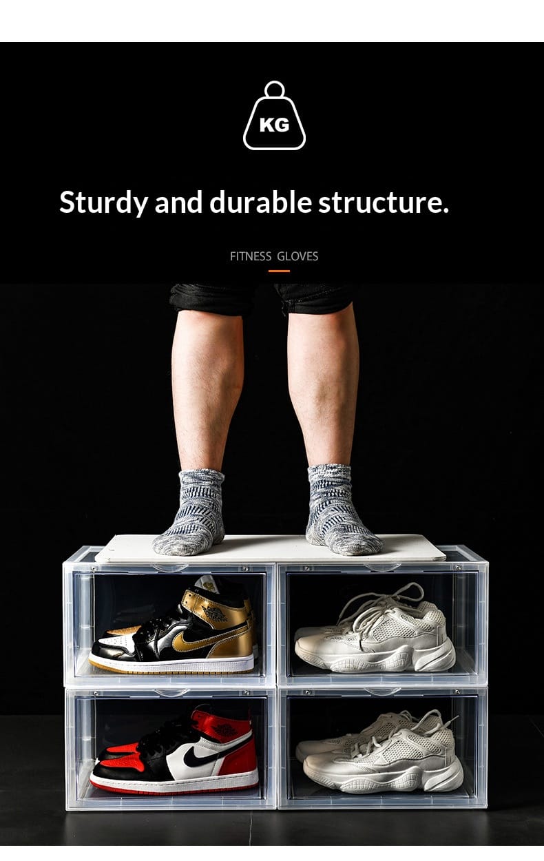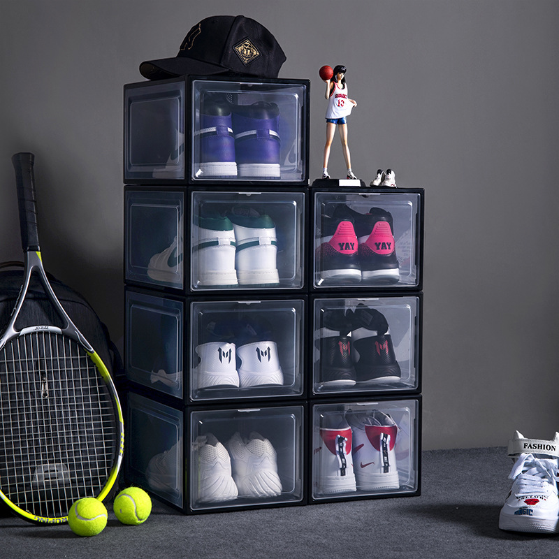 Factory direct sales enlarged plastic basketball sneakers storage shoe box transparent magnetic high-grade thickened drawer PP storage