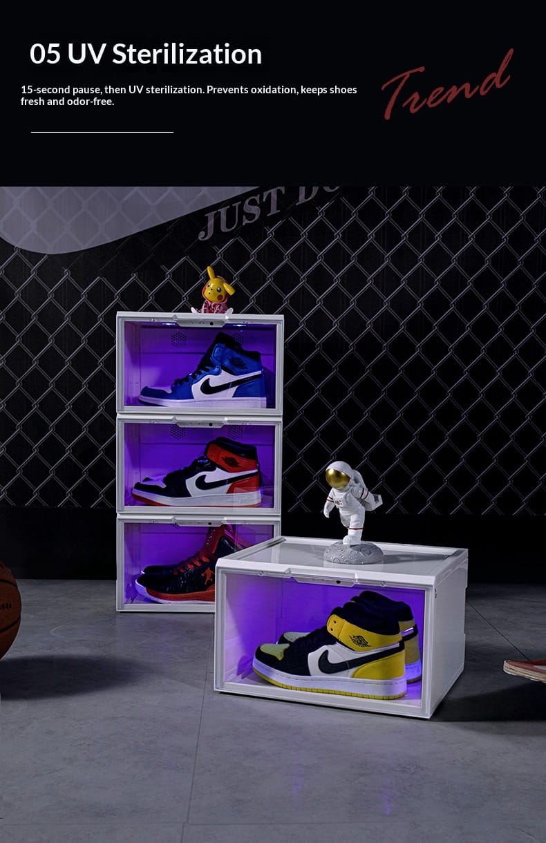 Cross-border high-end LED luminous shoe box UV sterilization dustproof shoe cabinet side opening voice control plastic magnetic absorption box