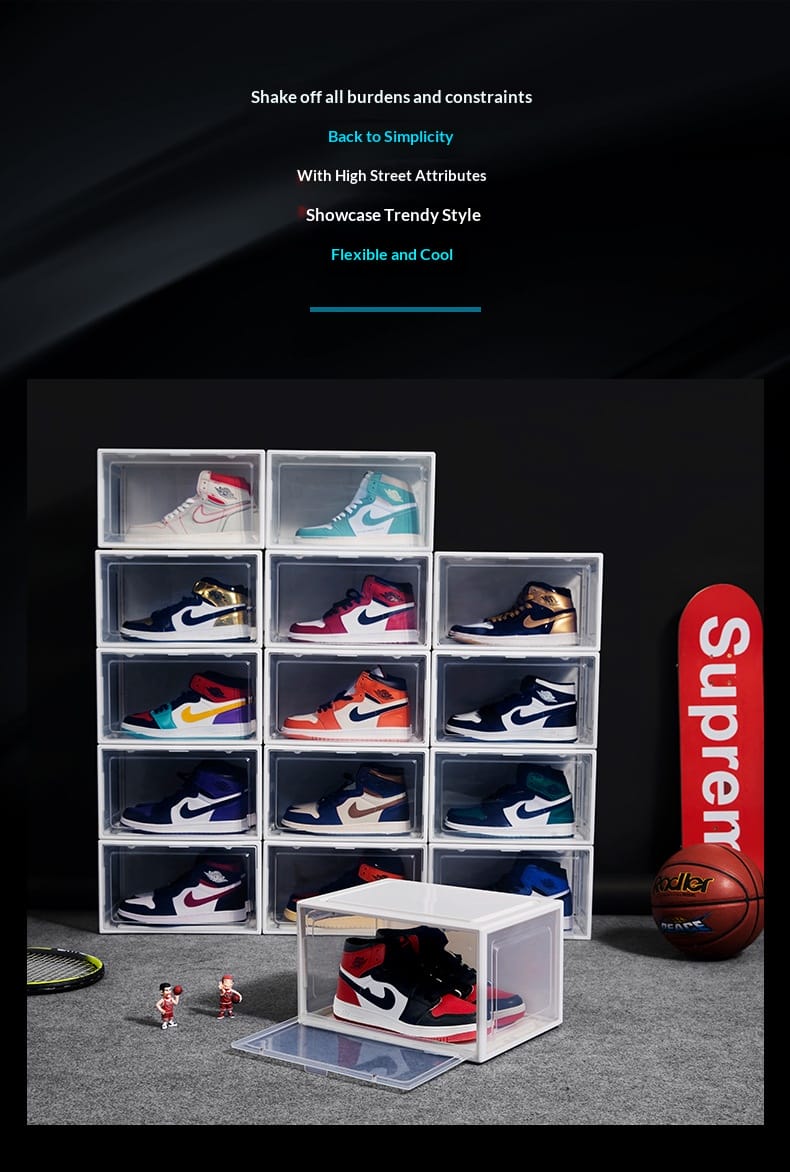 Thickened aj Sneakers Storage Box Dustproof PP Flap Plastic Transparent Shoe Box Acrylic Display Box Factory Wholesale