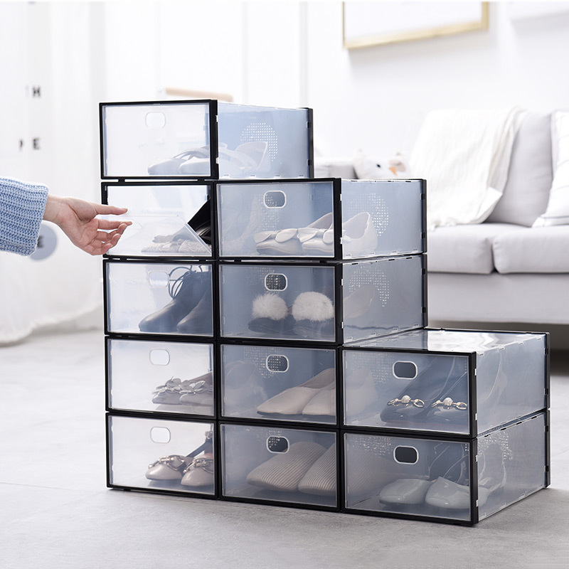 Transparent shoe box Japanese bedroom storage box clothing plastic storage box can be stacked with large dustproof sneaker organizer