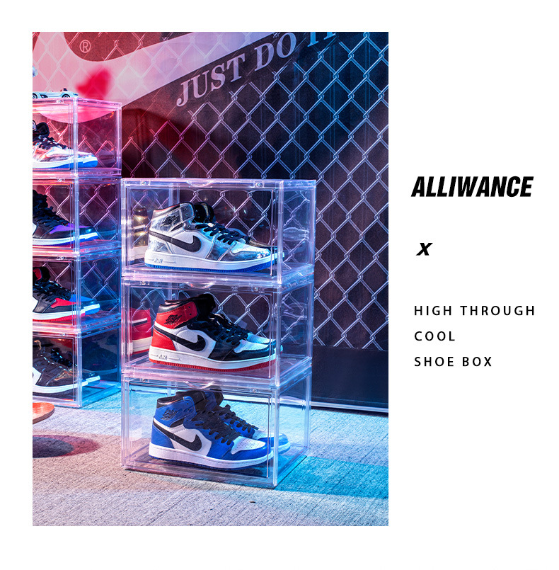 SWOOSH shoe box storage box full transparent acrylic aj shoes side open sneakers anti-oxidation and dust-proof plastic shoe wall